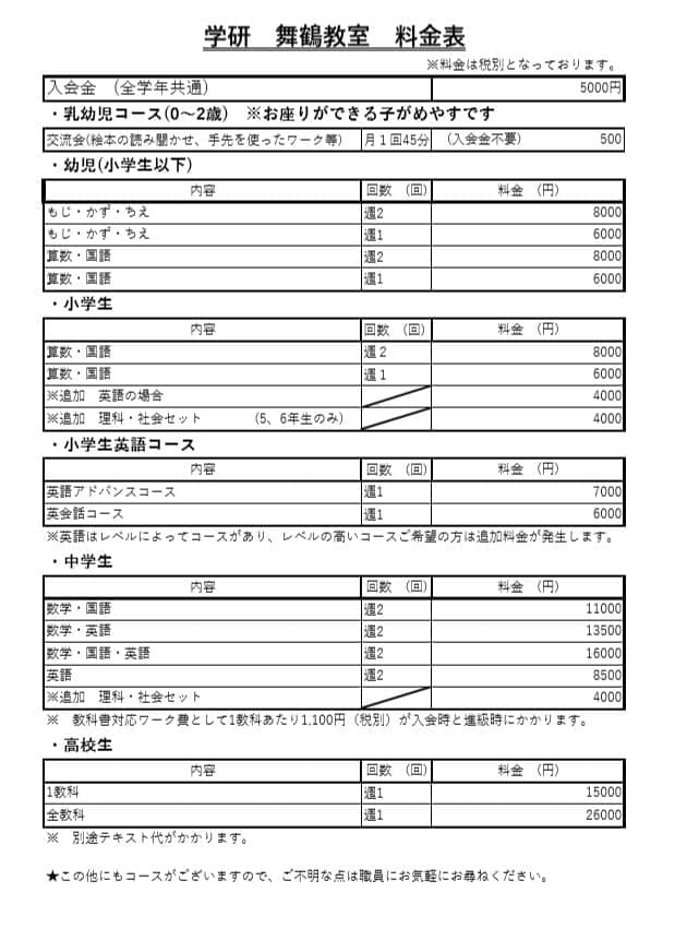 ※追加教科がある場合は、料金が異なります。